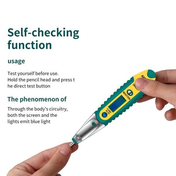 ●2. Easy To Use: Press the inductive break point test button, the charged symbol is the phase line, if there is a break point in the live circuit, move the test pen, the point where the charged symbol disappears is the break point.