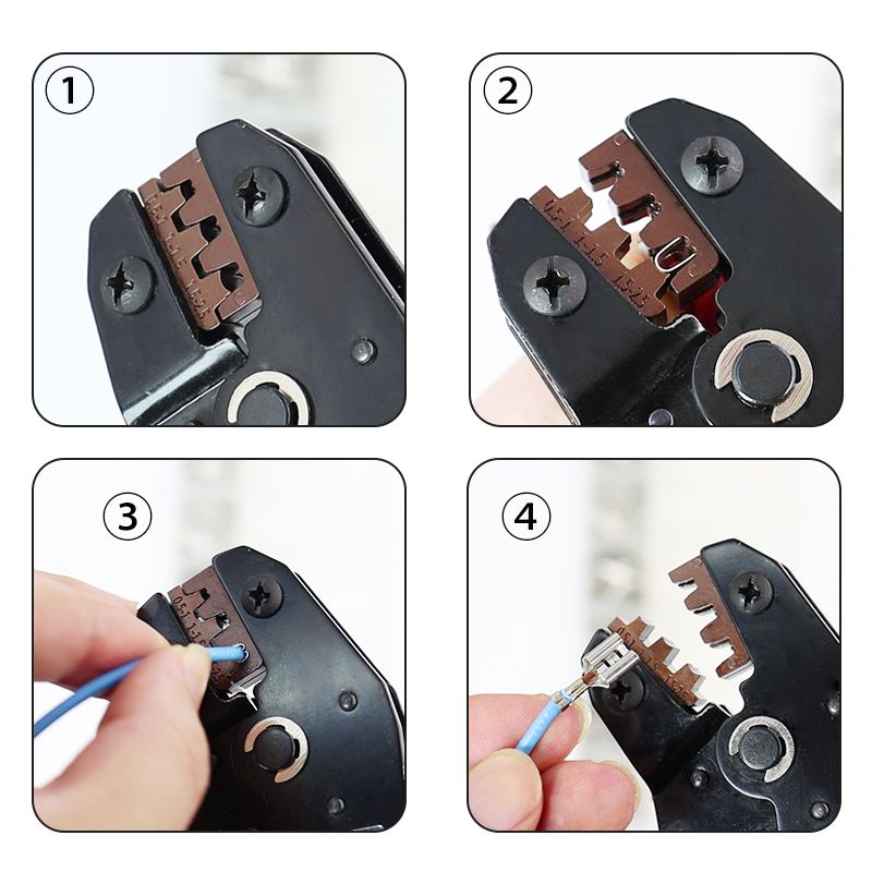 With 4 interchangeable terminals with different crimping ranges.