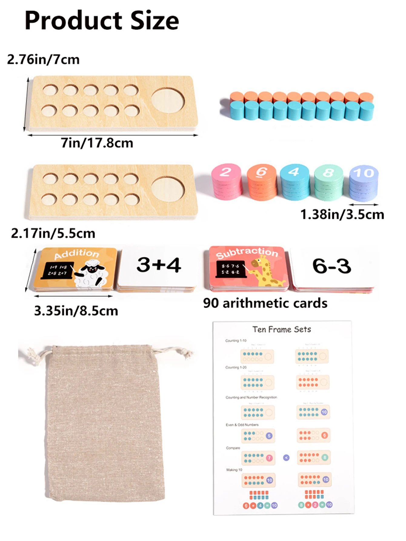 Wooden Ten Frame Math Toy – Counting & Numbers